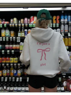 Оверсайз худи с принтом с начесом Y2K Just a girl с бантиком