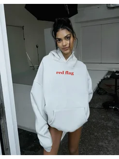 Оверсайз худи с принтом с начесом Y2K Red flag