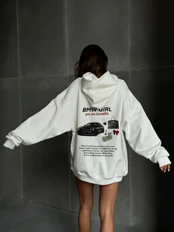 Оверсайз худи с принтом с начесом Y2K BMW girl