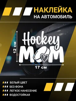 Наклейка на авто Hockey MOM Хоккейная мама 17х12 см белая