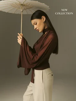 Новогодняя блузка кейп полупрозрачная из сетки со шлейфом