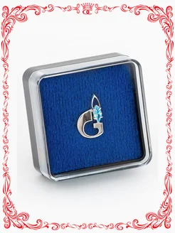 Значок G бижутерия с голубым фианитом