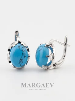 Серебряные серьги с бирюзой прессованной