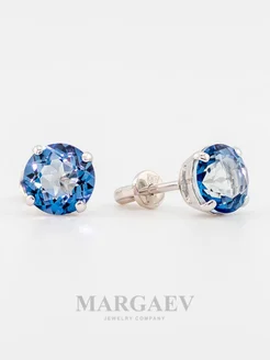 Серебряные серьги-гвоздики с голубым горным хрусталем Ø 8 мм
