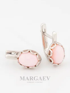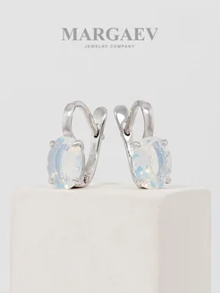 Серьги из серебра с овальными белыми лунными алпанитами