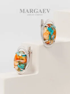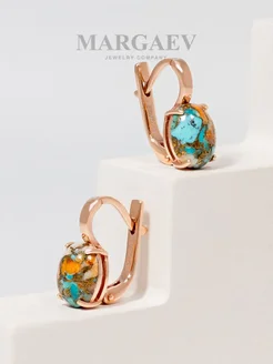 Позолоченные серьги из серебра с устричной бирюзой