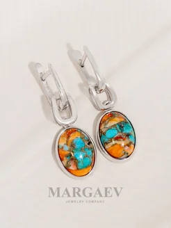 Красивые серьги из серебра с устричной бирюзой