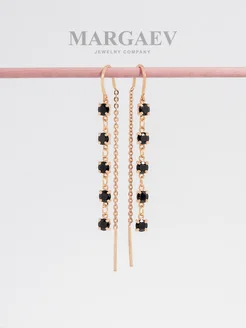 Позолоченные серьги-протяжки из серебра с черной шпинелью