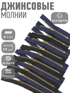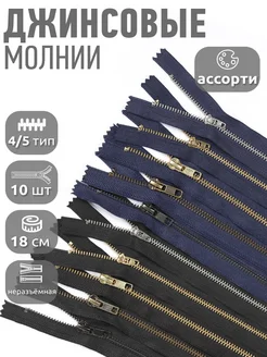 Молния джинсовая неразъёмная №4 10-18см АССОРТИ 10шт