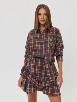 Костюм юбка с рубашкой в клетку