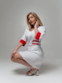 Халат медицинский короткий на молнии с рукавом 3 4
