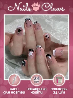 Накладные ногти с клеем короткие 4 набора 96 штук френч