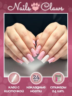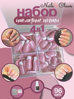 Накладные ногти с клеем длинные 4 набора 96 штук френч