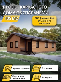 Проект одноэтажного каркасного дома 105 м2 с 3 спальнями