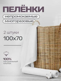 Пеленка непромокаемая многоразовая 2 шт, хлопок 100%, 100х70
