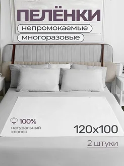 Пеленка непромокаемая многоразовая 2 шт хлопок 100%, 100х120