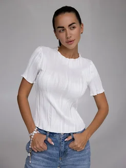 Футболка блузка нарядная в рубчик облегающая белая