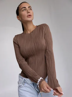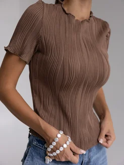 Футболка блузка нарядная в рубчик облегающая коричневая