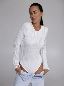 Вечернее боди с длинным рукавом белое