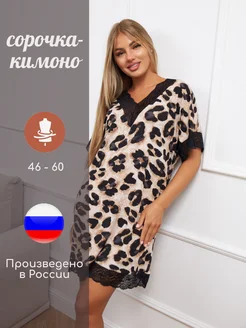 Ночная сорочка-туника ночнушка леопардовая большие размеры