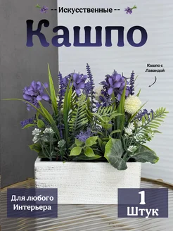 Кашпо с искусственными цветами лаванда