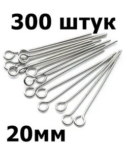 Пины с петлей колечком 300 шт Серебристые 20х0.7 мм