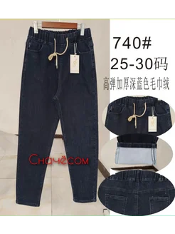 Джинсы мом на резинке утепленные на тонкий флис