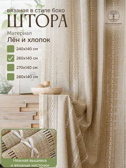 Штора лен 260х140 см (1шт) бохо