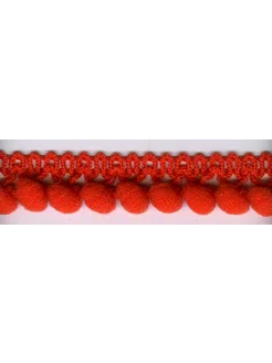 Тесьма с помпонами однорядная красно-оранжевая 5 метров