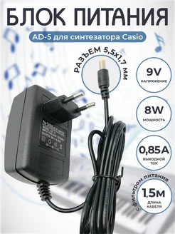 Блок питания AD-5 для синтезатора 9V 0.85A кабель 1.5 метра
