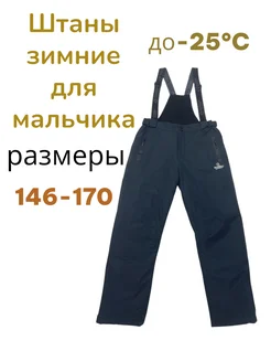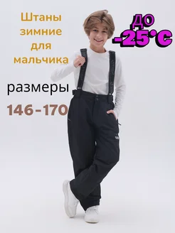 Штаны зимние для мальчика на лямках утепленные мембрана