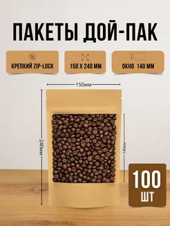 Бумажные крафт зип пакеты 150x240 мм с окном 14 см