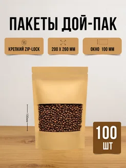 Бумажные крафт пакеты 200x260 мм, с окном 10 см, зип лок