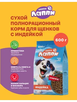 Сухой полнорационный корм для щенков с индейкой, 0,6 кг