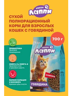 Сухой корм для взрослых кошек с говядиной, 0,7 кг