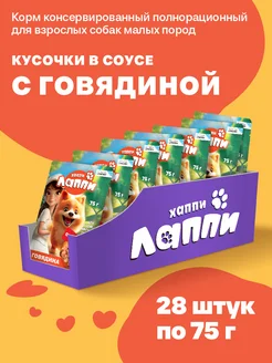 Корм влажный для собак.Кусочки в соусе с говядиной,75г*28 шт
