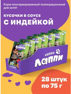 Влажный корм для котят, с индейкой, 28шт по 75г