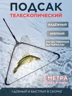 Подсак рыболовный телескопический, складной, сачок 3 м