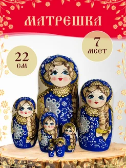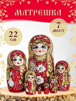 Матрешка деревянная 7 мест 22 см цветы и бисер с веером
