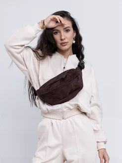 Сумка через плечо поясная бананка замшевая на молнии