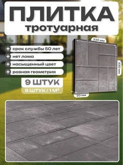 Плитка тротуарная полимерпесчаная, 33х33х2, графит, 9 шт
