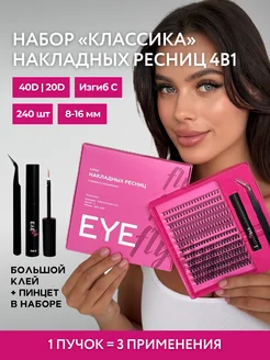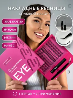 Накладные ресницы пучки с клеем и пинцетом для макияжа
