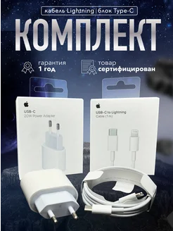 Быстрая зарядка для iPhone Блок Type-C 20W Кабель Lightning