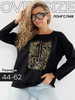 Хлопковый лонгслив оверсайз с принтом кофта