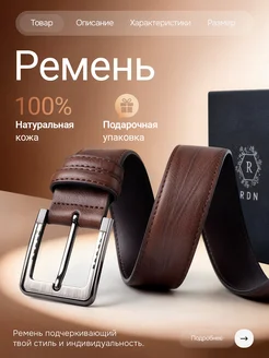Ремень кожаный натуральный для брюк и джинсов, подарок