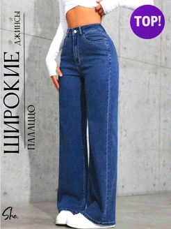 Джинсы женские широкие клеш с высокой посадкой трубы