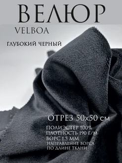 Велюр ткань для шитья. Черный. Отрез 50х50 см