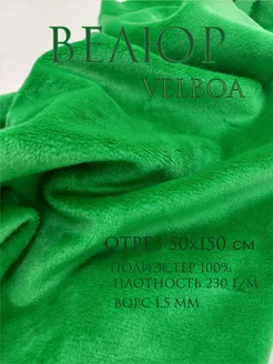 Велюр.Ткань для шитья. Отрез 50х150 см. Зелёный, изумрудный