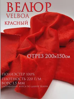 Велюр ткань для шитья. Отрез 50х150 см. Цвет- красный