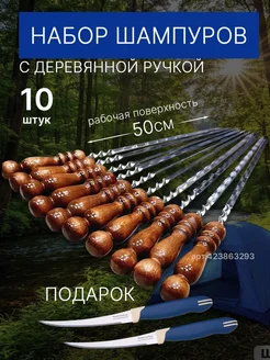 Шампуры с деревянной ручкой 50 см 10 шт + нож в подарок